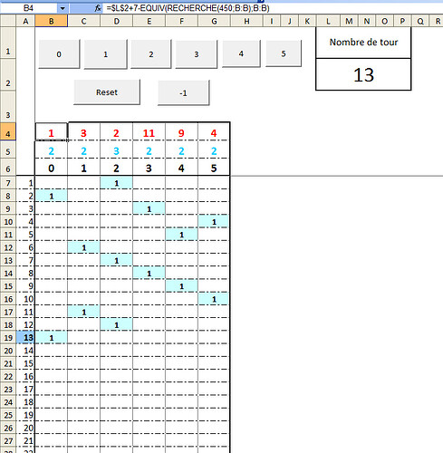 Ensuite il faut qu’elle se mette à 0 lorsque un nouveau « 1 » s’inscrit, mais on dirait que la formule ne le remarque pas, elle se met à jour bizarrement