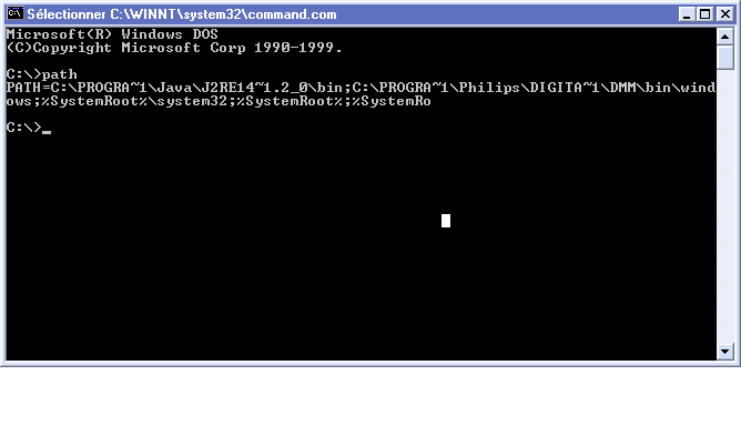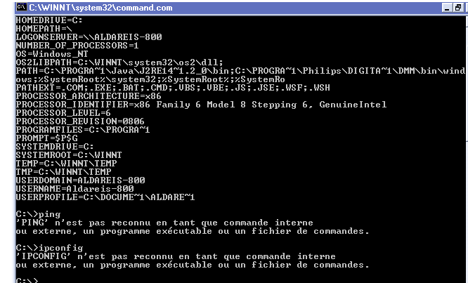 Par ailleurs et ce qui est comique cest que si je tape la commande entière C:\WINNT\system32\ipconfig, ca marche !
