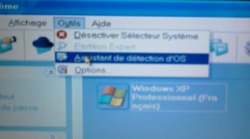 Donc voilà comment se présente lapplication outil « Sélecteur Système » dAcronis. (Désolé pour la qualité de limage, mais je nai pas trouvé dautre moyen de capturer lécran quavec mon appareil photo, car Windows XP nest pas encore lancé pour les screen shots.)