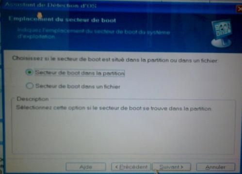 Et à partir dici, le choix « secteur de boot dans la partition » ne me mène nulle part. Et le choix « secteur de boot dans un fichier » ma aussi mené nulle part, même après avoir testé tous les fichiers du dossier Ghost ci-dessus plus avant.