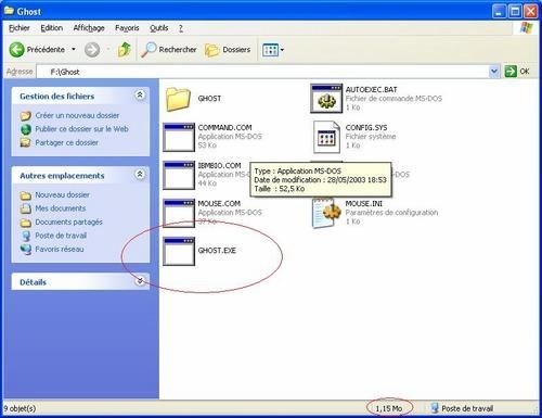 Sous MS-DOS, pour lancer cette application il me suffisait simplement de lancer le fichier « GHOST.EXE » dont voici un aperçu