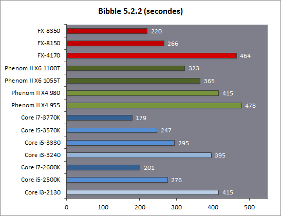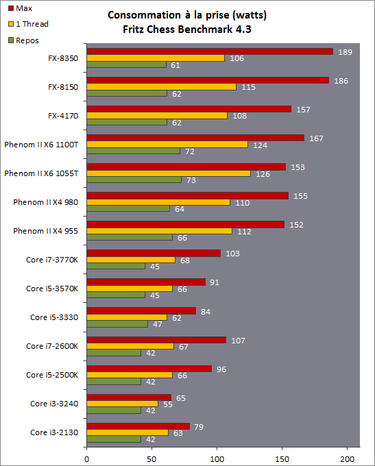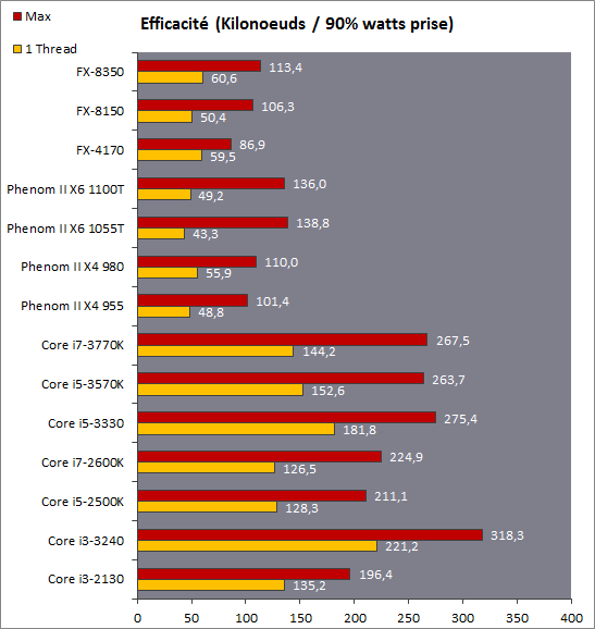 Nous avons le même comparatif… On voit bien que le i7 écrase le 8350 dans l’efficacité électrique, dans le rendu 3D, dans la compilation,dans la compression, dans l’encodage, dans le traitement photo, et dans les jeuxMAIS ATTENTION le 8350 dépasse le i7 dans UNE catégorie (whaoooooooo) l’IA d’échecs… UTILITÉ ?