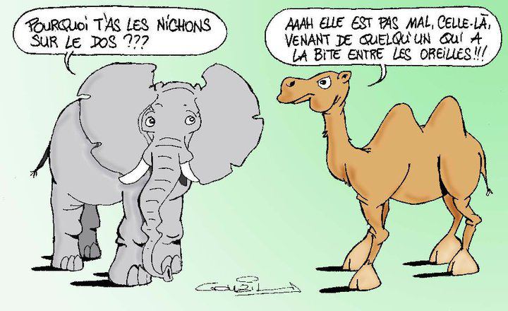 Ca se passe dans un zoo. Un éléphant dit à une chamelle: