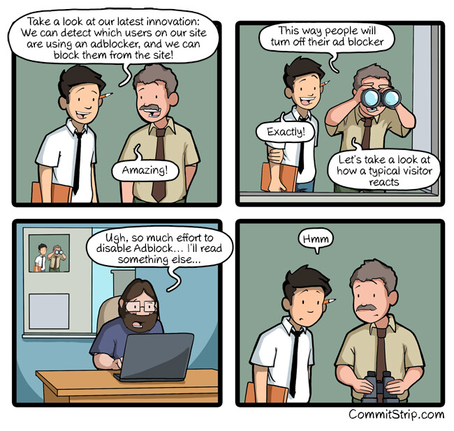 Après, s’ils n’avaient pas tellement abusé sur les publicités dans les sites (suffit de naviguer avec un mobile ou une tablette pour se re-rendre compte du problème), les bloqueurs de pubs ne se seraient pas autant développés !