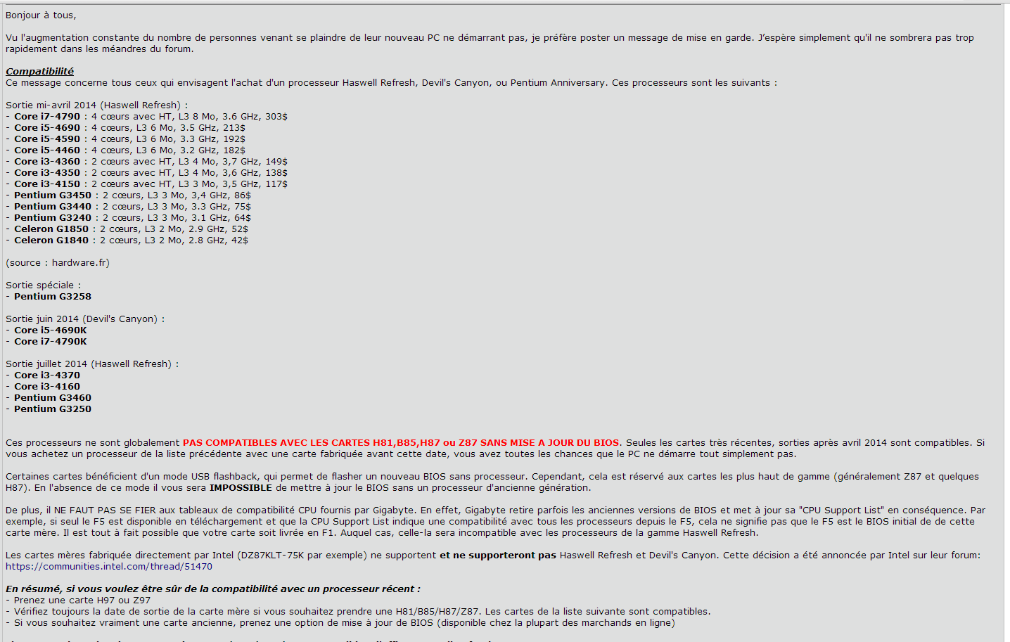 Au début du topic, quand tu as dit I5 4690K + Z97, pour moi (d’après ce que je savais) ça devait fonctionner (donc je n’ai pas chercher plus loin dans cette direction la).