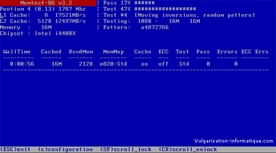 j’ai commencer à faire le test de la mémoire avec ma premiere barrete, j’ai pas trop compris le logiciel, mais je peut dire que sous l’onglet "errors", la valeur monte à une vitesse folle, je vais comparé avec les autre barrettes et donnerais le rendu.