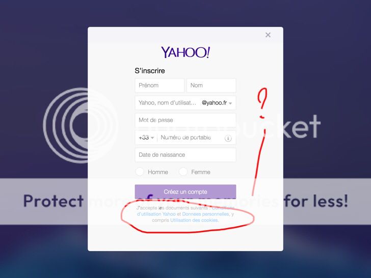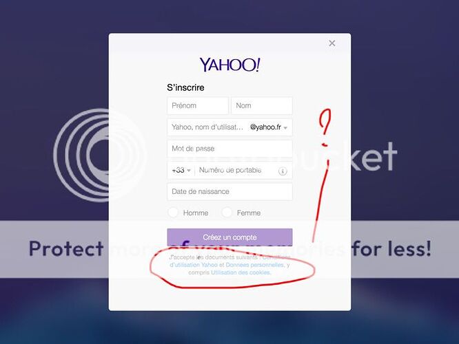 Je voudrais m’inscrire sur Yahoo (en fait sur Flickr mais il faut d’abord s’inscrire sur Yahoo pour cela)