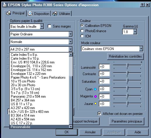 Hé non, j’ai beau tout essayer dans les propriétés de cette imprimante, y a rien à faire, je n’ai que ces formats là ! Et le driver est malheureusement bien le dernier .