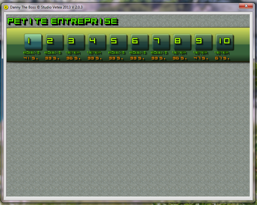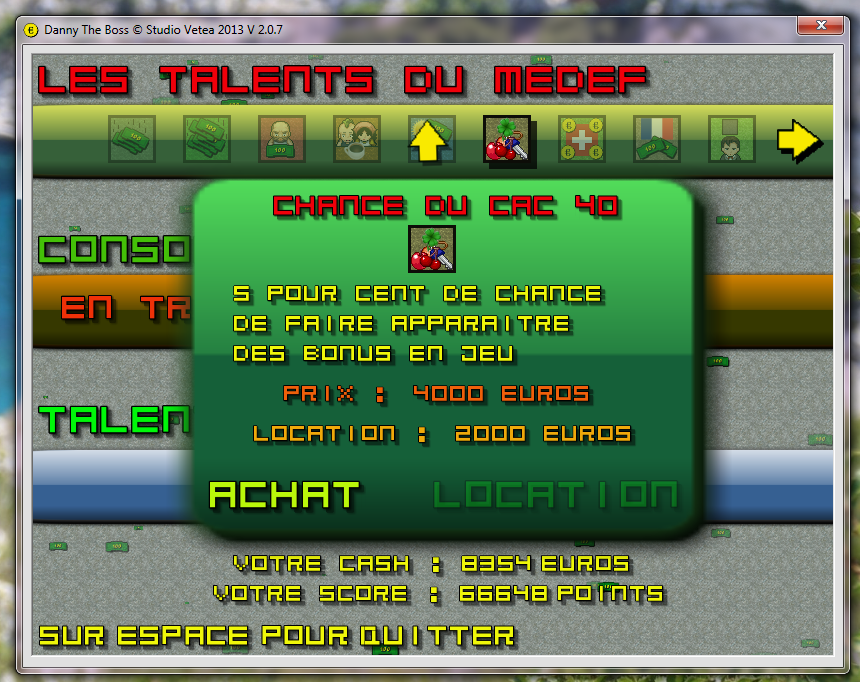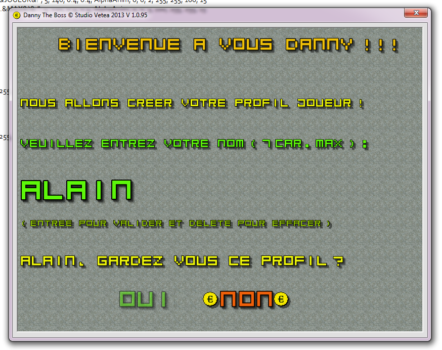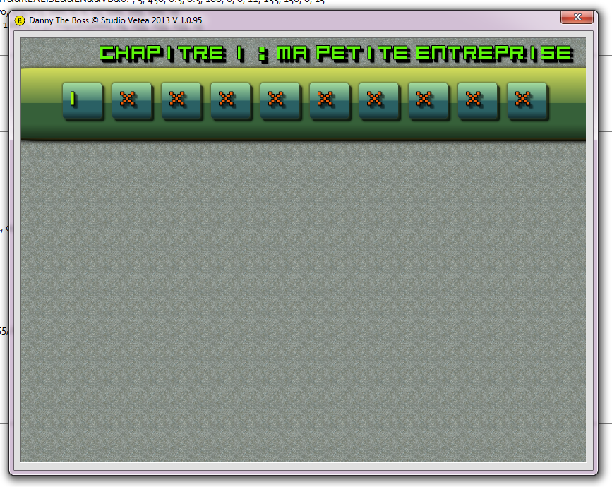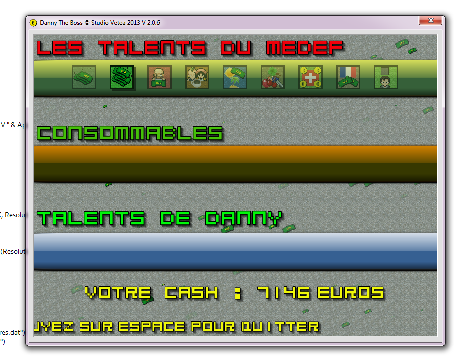 Dans les prochaines versions, la progression sera sauvegardée ainsi que le score et le cash de Danny et la mise en place du E - Scoring fera son apparition.