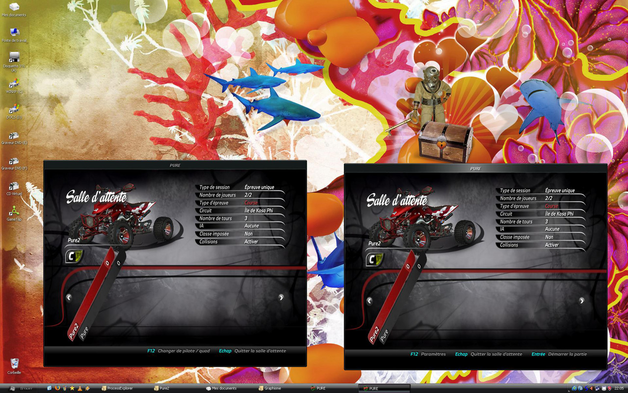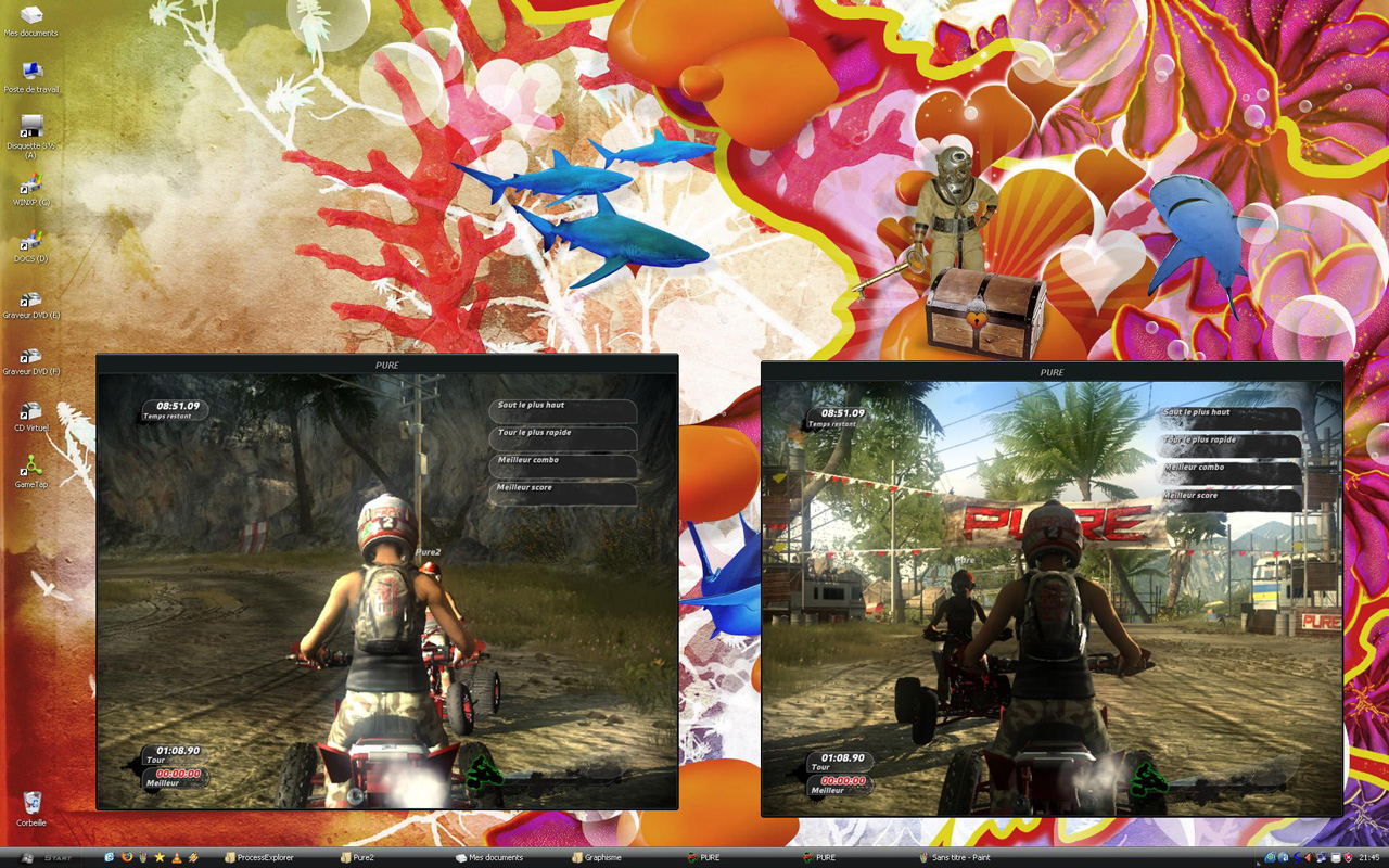 Ben non, même pas, je peux bien agir sur les deux sans problème (si c’est ce que tu as voulu dire). Je peux par exemple conduire le quad sur n’importe quelle des deux applis dès qu’elle a le focus (quand je clique sur la fenêtre avec la souris, par exemple).