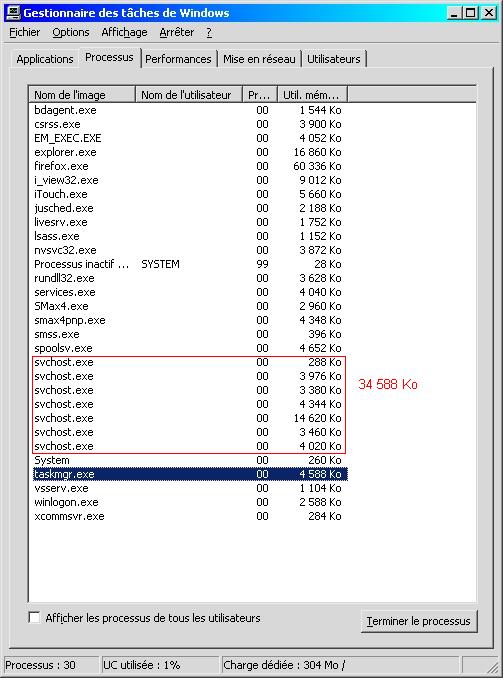 Bonjour à tous il me semble avoir un léger soucis avec mon O.S. en effet dans le gestionnaire de tâche je compte pas moins de 7 svchost !