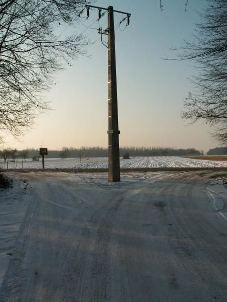 une ch’tite photo qui a ete prise aujoud’hui (elle aurait presque pu rentrer dans le dernier concours), un poteau au milieu de la route, c’est vraiment original !