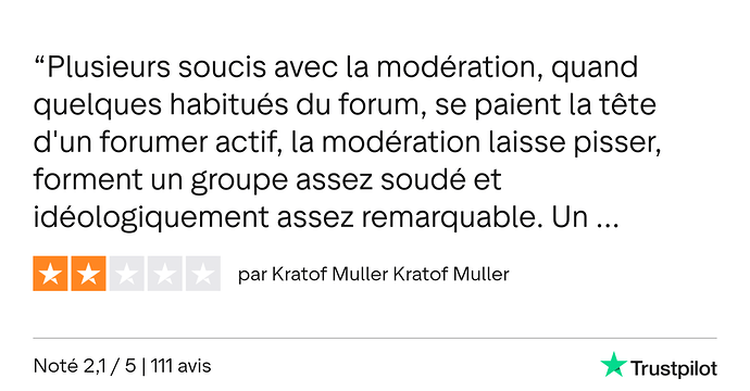 Et le jour où je posterais sur Trustpilot, je le ferais avec ce pseudo pourquoi un autre ? et surtout j’aurais pas choisi ce moment car le timing n’est pas parfait.