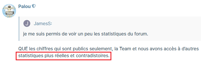 @Palou : je n’ai pas oublié tu sais, j’attends toujours tes chiffres sur le forum, tu sais les stats qu’on voit pas nous les membres ![]()
