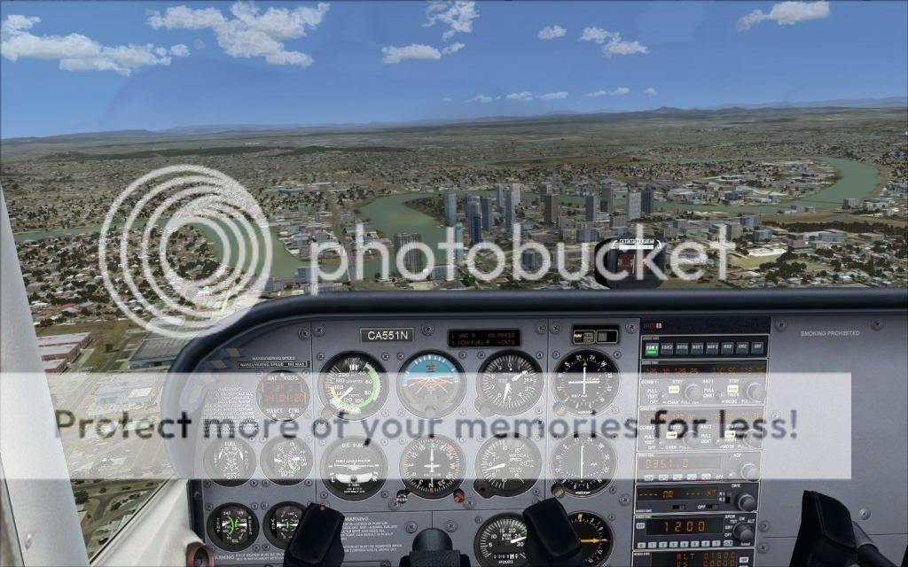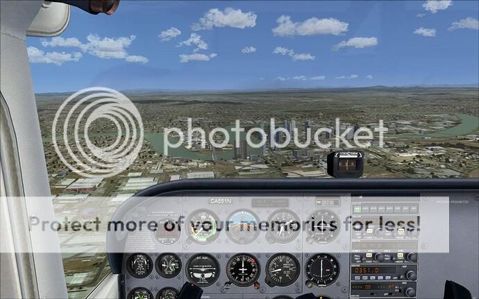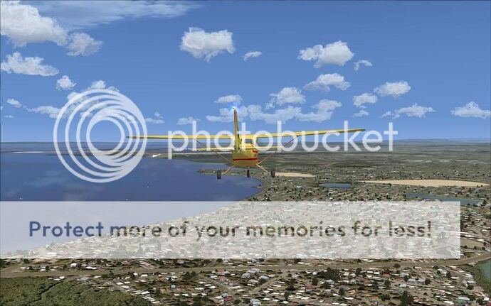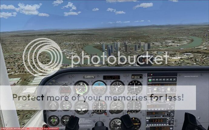 Ca rame un poil plus que l’autogen de base (quoique, au-dessus des grandes villes, c’est pas mieux ^^), mais déjà à ce niveau, on n’a nettement moins l’impression de « découpage » des textures (qui n’a jamais remarqué cette « maison » coupée en deux à l’approche du terrain de l’aéroport ? :p), et surtout, on évite l’écueil de « l’immeuble qui prend la forme de la rue » que je trouve absolument horrible, perso :op)