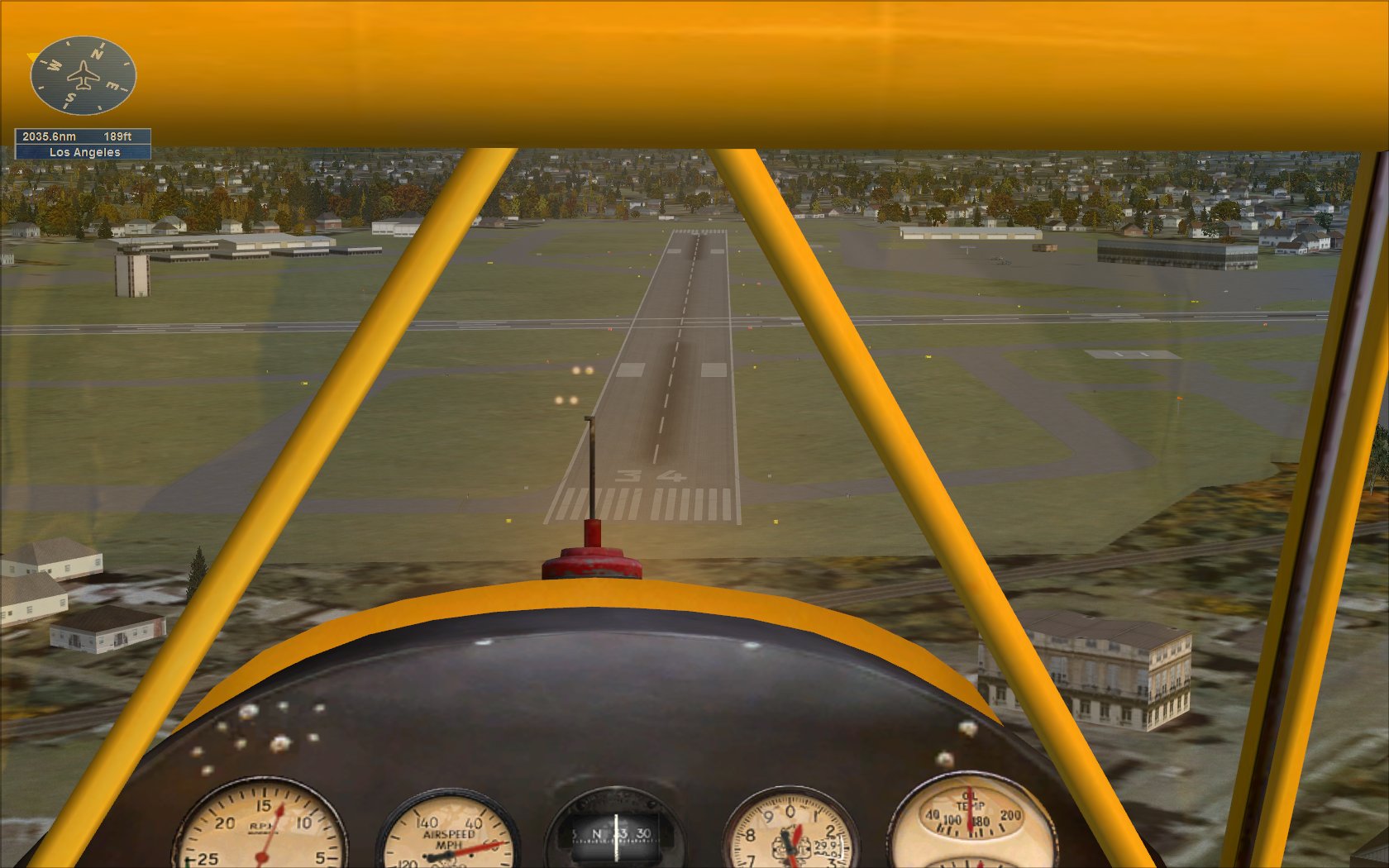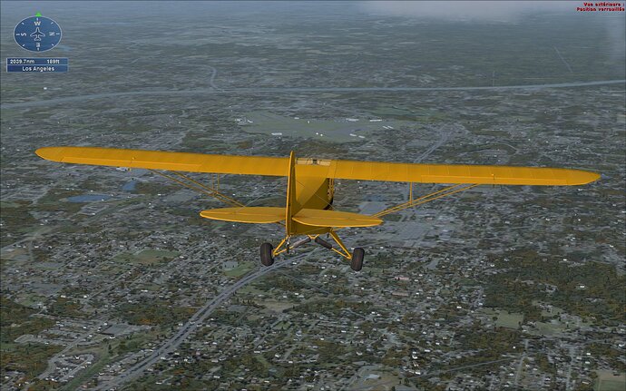 Un peu plus de 2000 pieds je crois. Je pensais que la petite bulle en dessous de la boussole permettait d’indiquer l’inclinaison droite/gauche, mais elle n’a pas l’air de bouger ![]()