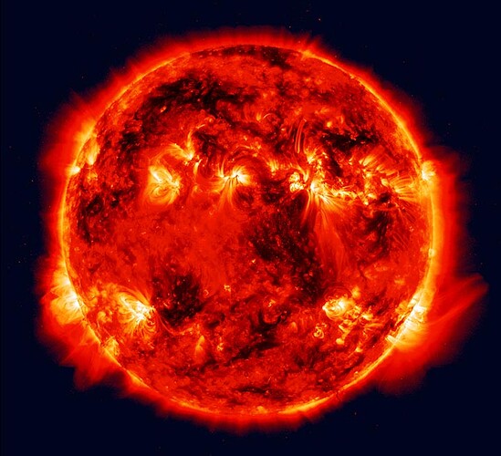 All three images are made in extreme ultraviolet light, but each individual image highlights a different temperature range in the upper solar atmosphere: Red at 2 million, green at 1.5 million, and blue at 1 million degrees Celsius (3.6 million, 2.7 million, and 1.8 million degrees Fahrenheit). The combined image shows bright active regions strewn across the solar disk, which would otherwise appear as dark groups of sunspots in visible light images.