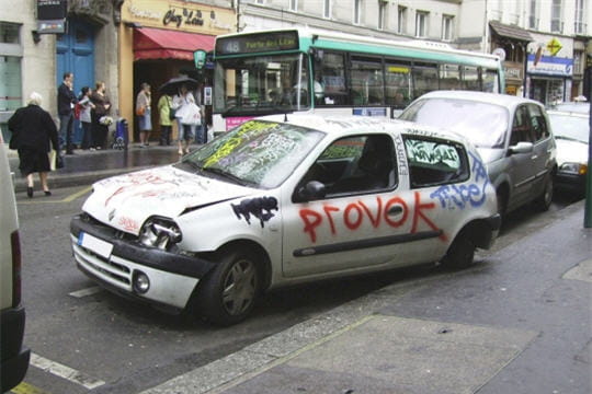 Une bagnole se pointe, la nana se gare complétement en vrac, au point que … elle se retrouve à 15 cms de ma voiture (donc vous aurez compris qu’elle sort allègrement sa place) et complétement de travers …