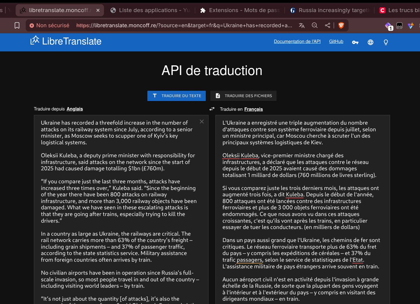 j’ai réussi à installer LibreTranslate sur mon serveur homelab :