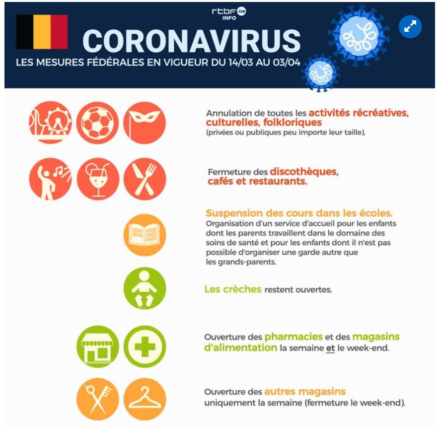 De notre côté, on va limiter les déplacements au minimum nécessaire…et pour mon beau-fils qui travaille à Bruxelles, il n’a reçu aucune instruction de son employeur, donc il va continuer à aller bosser sinon il risque de se faire virer ![]()