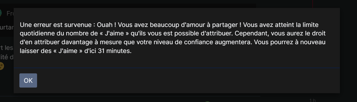 Je pense que Palou veut dire qu’il serait bien (ou pas ^^ ) d’avoir le même système limitant les alertes modos à un certain nombre par jour.