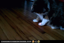 A mon avis, il cherche juste à chopper le truc qui pendouille ![]()