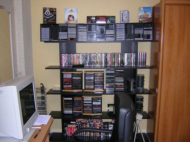 PS : Belle Installe propre et bien rangé, belle vu sur les CD vierge ou gravé lol, et aussi j’ais reconnu la xbox dans la porte vitré gauche.