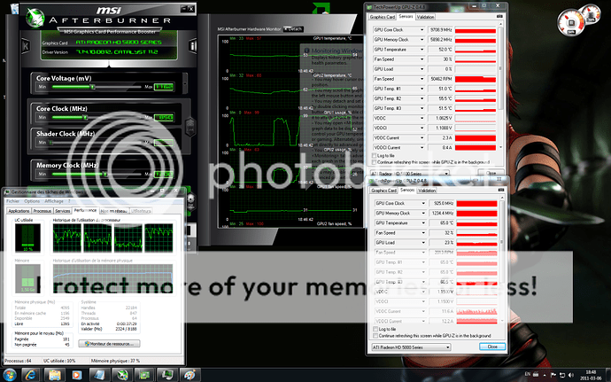 avec un q9400@3.5 j’ai du mal avec 2x4870 (la preuve au dessus) alors 2x5870 c’est tout vu apres chacun ses opinions je crois qu’on s’obstine pour rien
