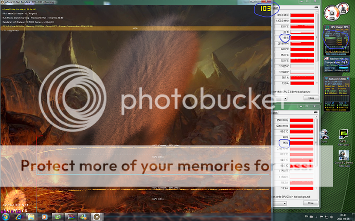pour finir voila un teste avec fur mark je prend le temps de regarder le gpu load … et on vois tres bien que les carte travaille de concert !