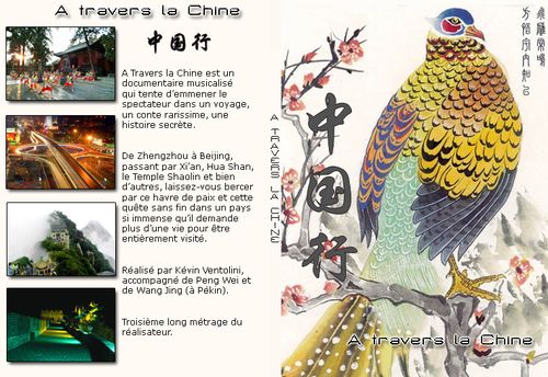 à Travers la Chine est un documentaire musicalisé d’1 h 49 que j’ai réalisé en hiver 2005 en Chine. J’ai opté pour un choix simple, mais que je crois efficace, ne pas mettre de voix-off et laisser mes goûts musicaux bercer le spectateur. Ce documentaire-film essaye de retracer mon voyage qui a démarré de Zhengzhou jusqu’à Beijing, passant par le mystérieux Luoyang, le surpeuplé Kaifeng, le mystique temple des Shaolin […] et bien d’autres lieux magiques et ancestraux encore.