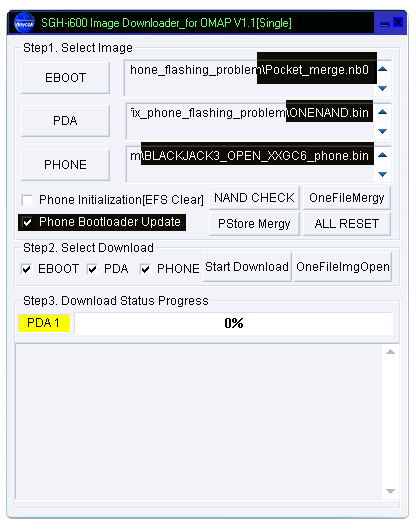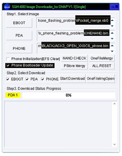 Oui j’ai bien compris qu’il faut appuyer sur les 3 touche en meme temps, la apparait l’écran noir avec inscrit en jaune « downloader v1.1 » et en bas en vert « active phone off » ensuit je clic sur start download et rien la barre de progression n’évolue pas???