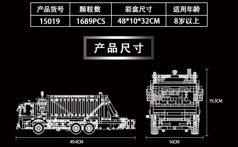 Mould-King-15019-RC-Garbage-Truck-with-1689-pieces-2