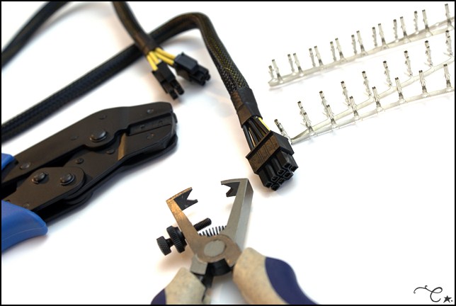 C’est parti pour un petit peu de sertissage : modification du câble d’alimentation du CPU :