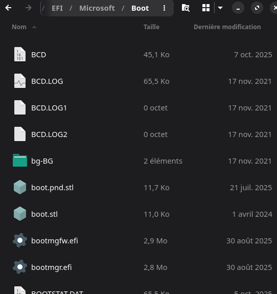 (c’est la partition efi mais vu sous linux, sur windows c’est plus casse pied pour voir son contenu, faut lui associer une lettre par exemple)