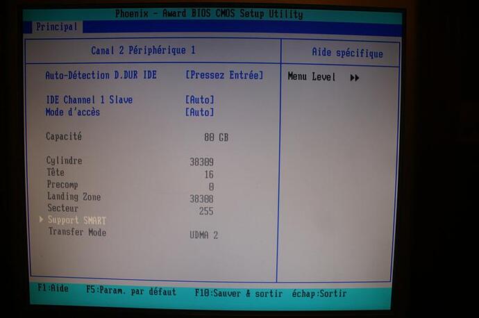 j’ai un DD SATA Seagate d’une capacité de 180 giga et un DD Seagate sur nappe IDE d’une capacité de 80 giga. le premier est en UDMA 5 mais l’autre est en mode UDMA 2. Je suis tombé sur ce topic concernant un transfert lent. . Je suis donc aller voir dans le bios , mais l’option est grisée ( si il s’agit bien d’une option ) et donc inaccessible .