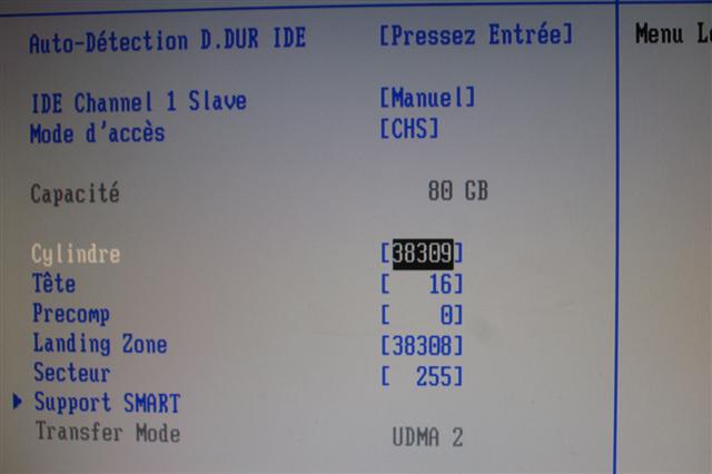 je me suis mis en mode manuel , et j’ai essayé une a une les options du mode d’accès mais seule l’option CHS me permet de changer les données decimale et toujours pas l’UDMA.