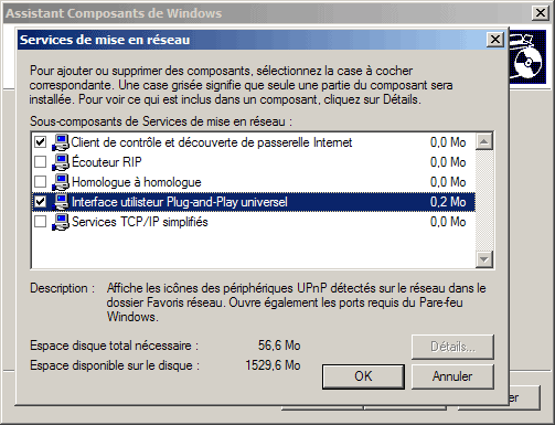 Il faut savoir que l’uPnP ne fonctionne pas si l’extension de windows n’est pas installer .