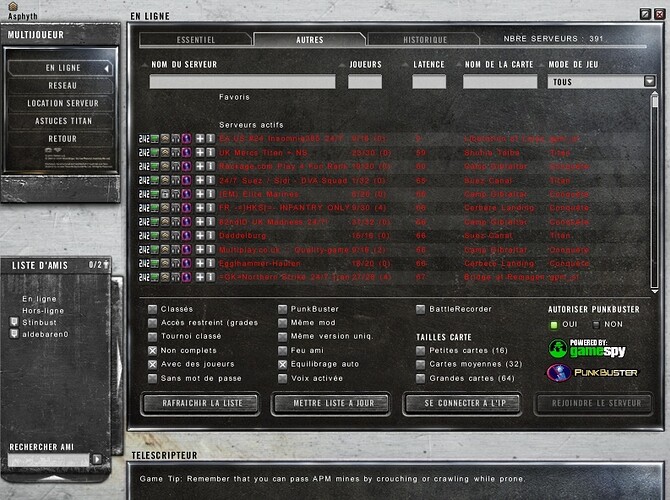 De plus je n’ai plus que 4 serveurs multijoueurs dans la liste et ce sont des russes !