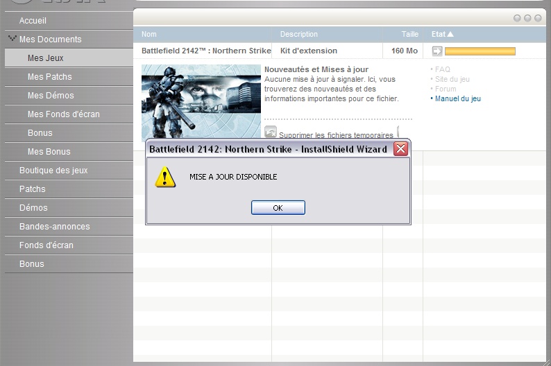 installation de bf2142 + p1.20 + ealink + northern strike + 1.25