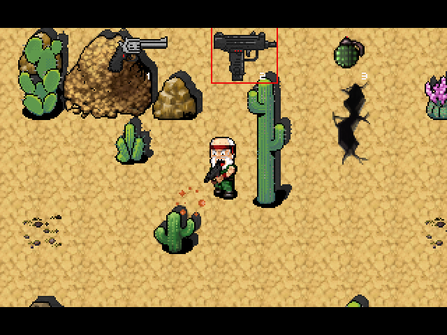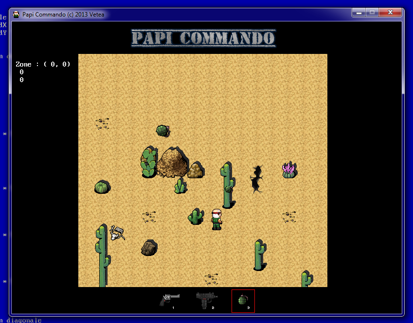 3/ Grenade : Système de visée manuelle avec l’aide d’un viseur que vous pourrez déplacer avec les touches fléchées tout en gardant la touche tir appuyée. Dés la touche de tir lachée, la grenade sera lancée à la destination voulue !