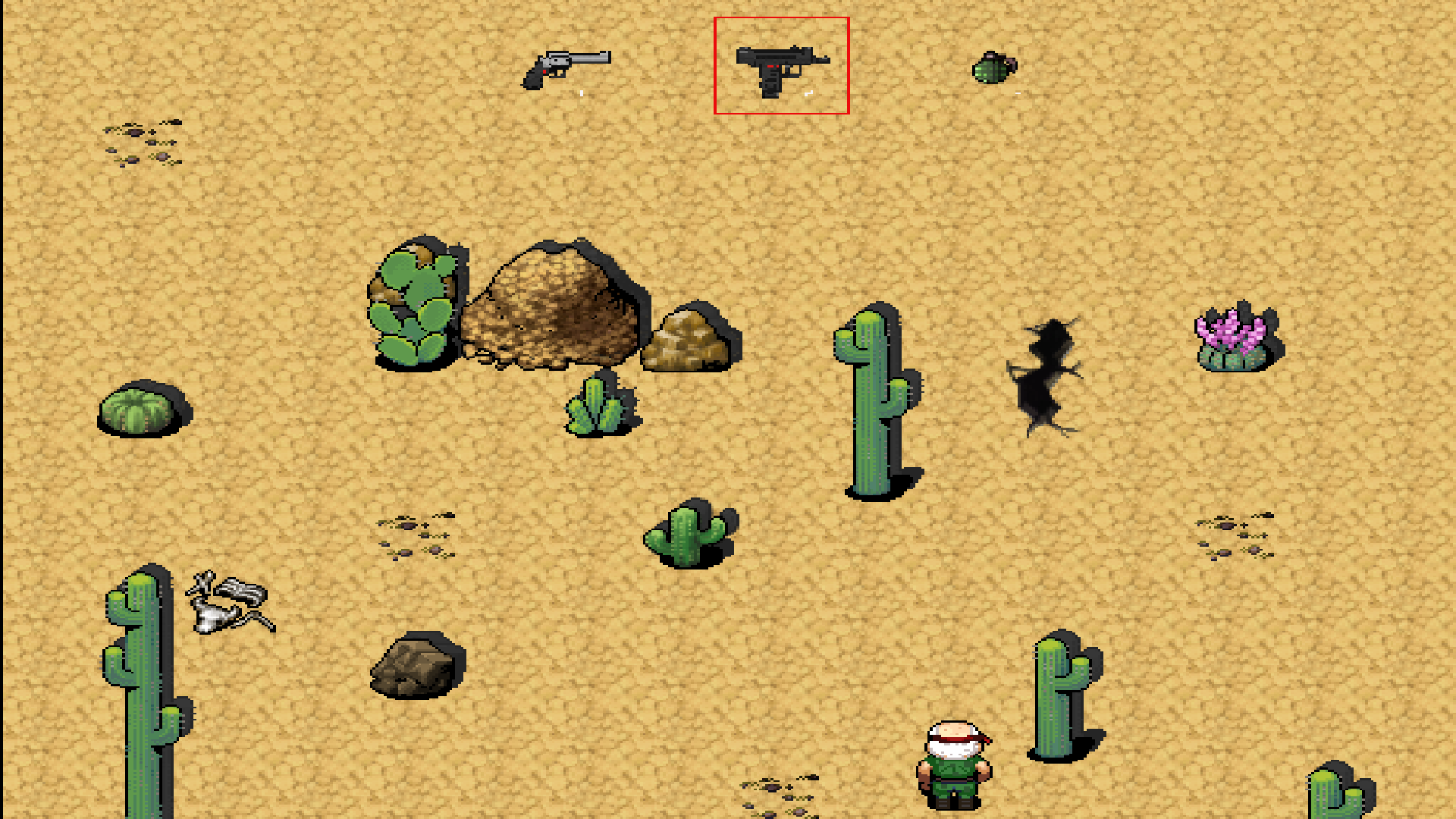 1/ Pistolet : Tir au coup par coup ( toutes les 2s ), portée infinie, vitesse de balle moyenne.