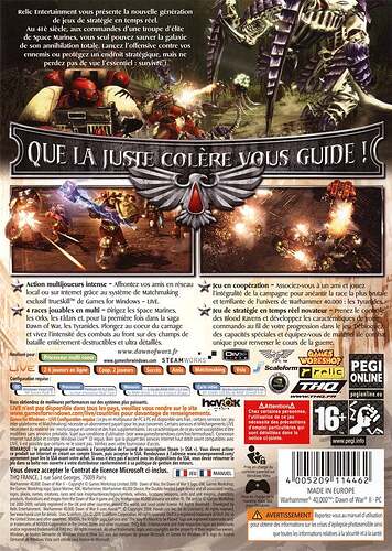 Voici mon problème, tout content j’achète Dawn of War 2 en magasin super pochette jsui fière