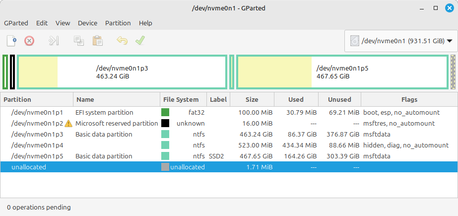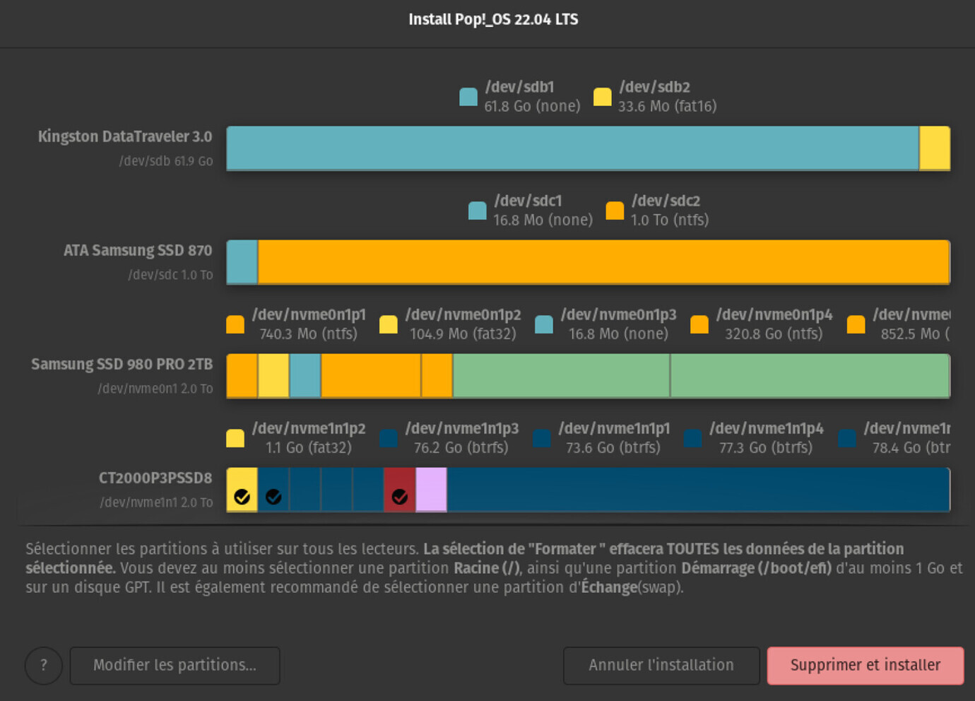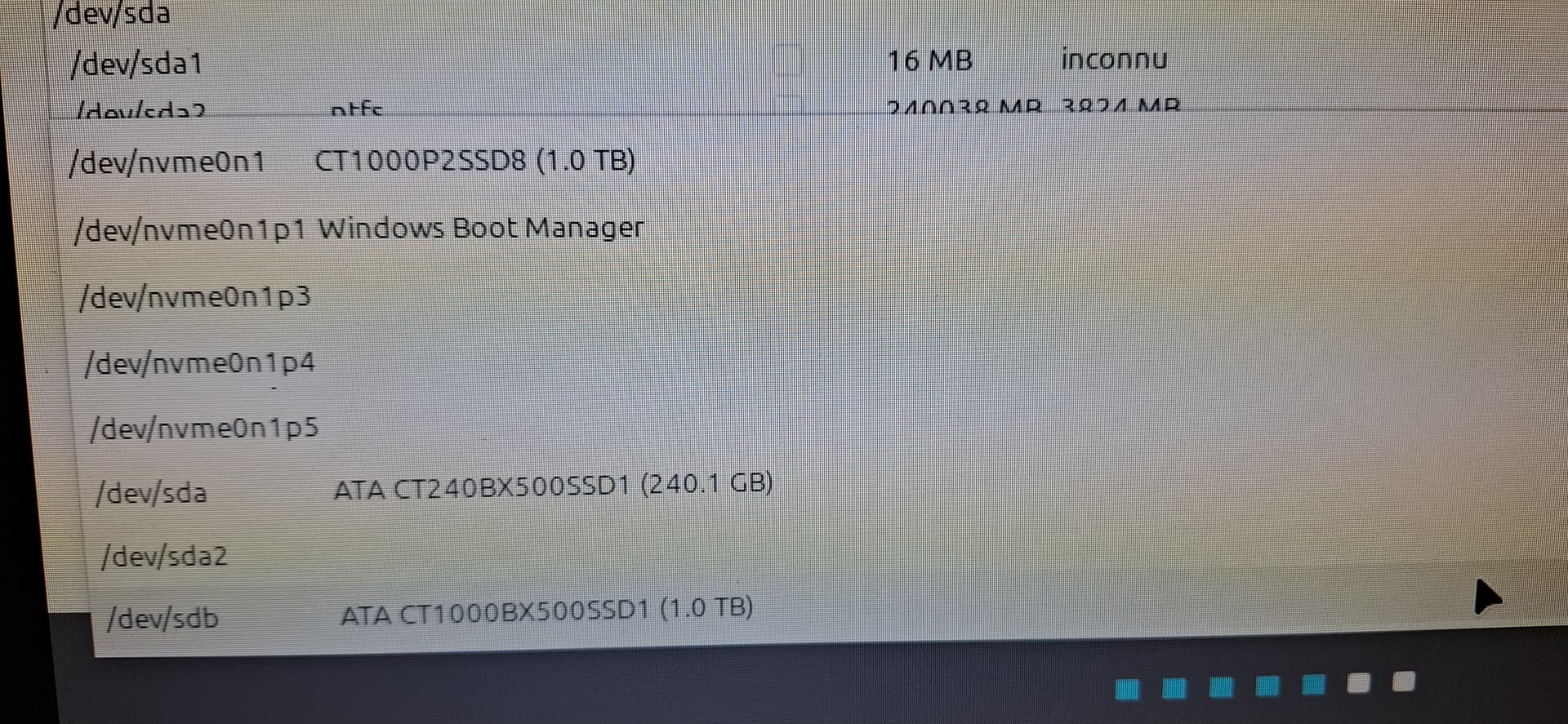 ici c’est ssd nvme0 (mon ssd windows10) mais c’est sur sdb (un ssd sata) que j’installe linux