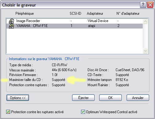 EDIT : normalement, n’importe quel graveur récent accepte les gravures en surcapacité (pour peu que le firmware soit à jour). On le retrouve dans la section Informations sur le graveur (choisir le graveur)