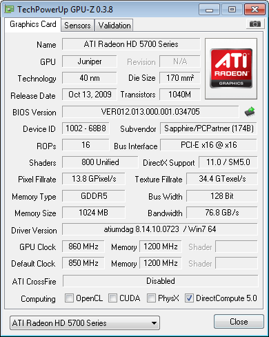 Carte graphique: Sapphire vapor-x 5770 1Go