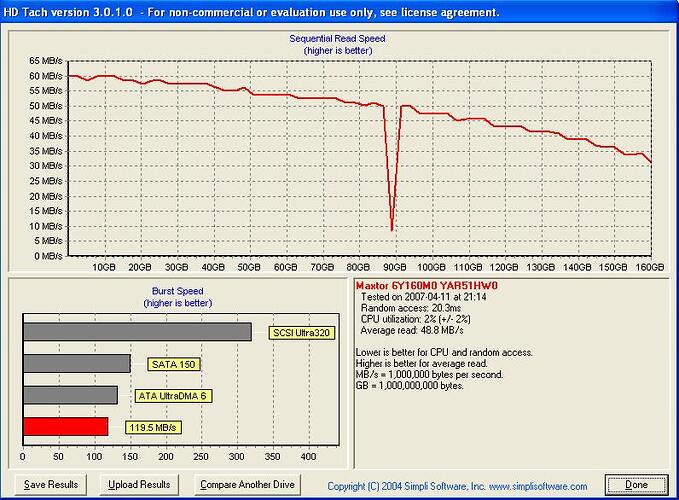J’ai un disque dur presque identique, un maxtor dont la référence est 6Y160MO, je le benche de suite pour voir ce dont il retourne :jap: