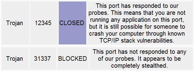 Il en résulte qu’aucun port n’est affiché chez moi en"Closed", mais en "Blocked", j’ai ensuite désactivé mon serveur FTP, et la, hoo surprise, je suis passé de Blocked a Closed sur le port 21.