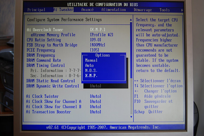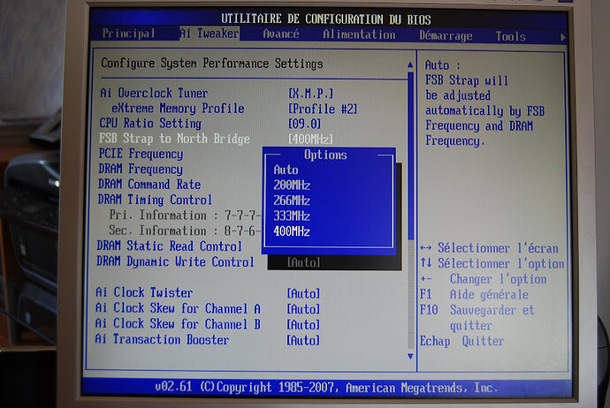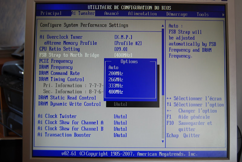 Le bios 0502 peut poser des problèmes de montée en fréquence mémoire (si ces problèmes ne se présentent pas, le strap 400 est bon en dual et le 333 en single).