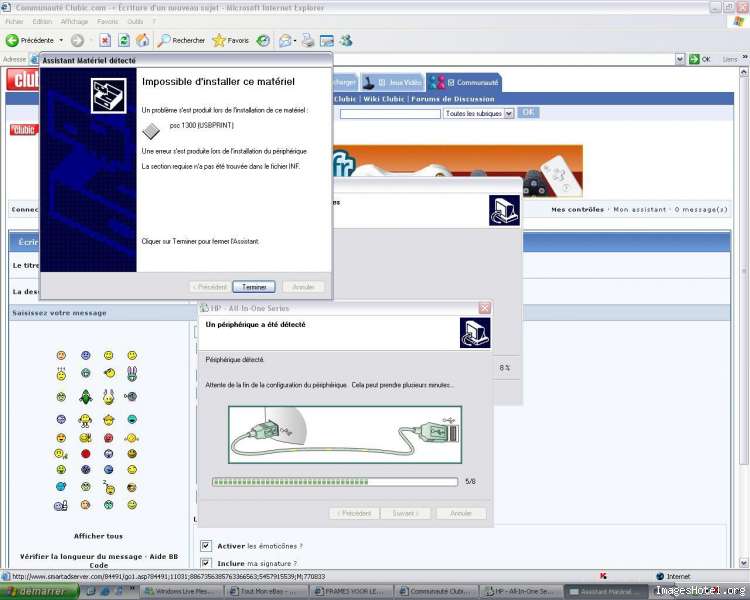 Ils sont fonctionnels tes ports USB au moins ? Ton problème arrive au moment de connecter l’imprimante.