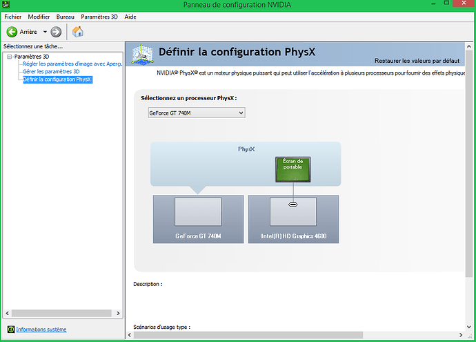 J’ai accès au tableau de configuration de la carte Nvidia mais rien n’y fait , s’est tout simplement comme si j’avais pas de carte graphique alors qu’elle est bien présente dans mon ordi !